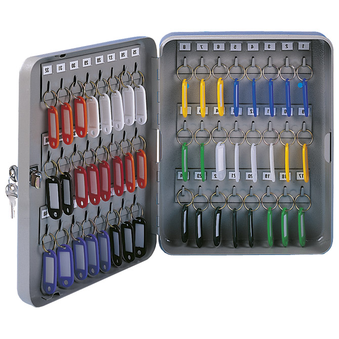 Specifikacija: metalni; zatvara se s ključem (dobiju se dva ključa); sa privjescima (boje: sortirano); svaki ključ ima svoj redni broj; mogućnost montiranja ormarića na zid