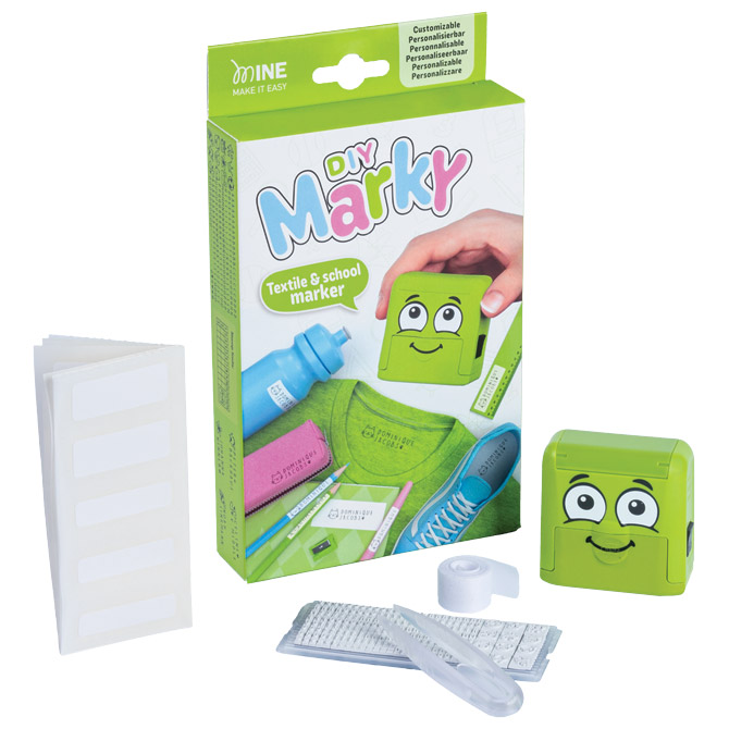 Specifikacija: Pečat za tekstil My Marky slagalica za označavanje odjeće namijenjena je kupcima koji traže jednostavan i brz način za označavanje odjeće za vrtić, školu, kamp, izlete ili za sportske i druge aktivnosti. Jednostavno složite željeni tekst i možete početi pečatirati odjeću ili čak druge upijajuće površine, poput školskih bilježnica, olovaka, ruksaka, papuča, pernica ili kutija za užinu. A djeca će lakše prepoznati odjeću označenu njihovom omiljenom slikom, što će spriječiti neželjene gubitke i zabune.