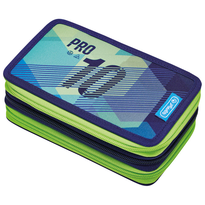 Specifikacija: 3 zipa; punjena s 31 komadom pribora: flomaster školski 14 boja, boje drvene 8 boja, olovka grafitna HB x 2 komada, šiljilo, gumica, ravnalo pvc x 2 komada, trokut x 2 komada i olovka kemijska; dimenzija: 19×11,5×7 cm