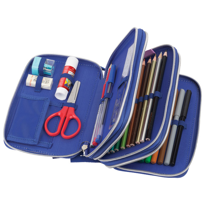 Specifikacija: 3 zipa; Faber- Castell punjenje s 44 komada pribora: flomaster školski 18 boja, boje drvene 18 boja, 1 olovka grafitna HB, šiljilo, gumica, ravnalo 15 cm, ljepilo 9g, škare, 2 olovke kemjske (plava i crvena); visokokvalitetna podstava i zatvarači
