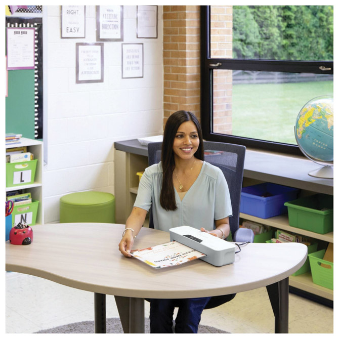 Specifikacija: plastificira dokumente do A4 formata (maksimalna širina 240 mm); sadrži: 2 valjka; folija: 80 i 125 mikrona (debljina folije se odabere pritiskom na gumb); vrijeme zagrijavanja 3 minute; plastificira i fotografije; 2 temperaturne postavke za toplu i hladnu plastifikaciju; polugica za oslobađanje zaglavljenog priloga; HeatGuardTM tehnologija toplinske zaštite (dvostruka izolacija kućišta za zadržavanje topline unutar plastifikatora dok vanjska površina plastifikatora ostaje hladna prilikom upotrebe); osvijetljene tipke na dodir za jednostavniji odabir funkcije; automatsko gašenje plastifikatora nakon 30 minuta radi uštede energije; pakiranje uključuje i 10-ak folija za plastificiranje; dimenzija: 342x110x75 mm; težina: 1,4 kg; 2 godine garancije