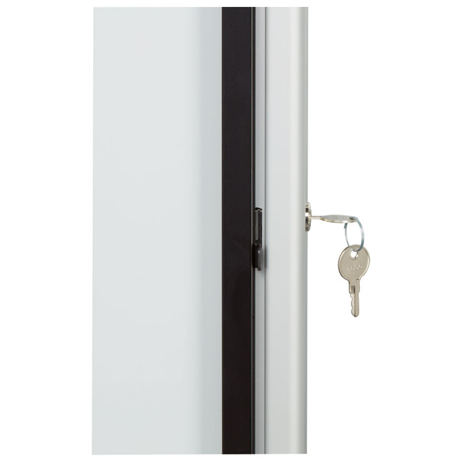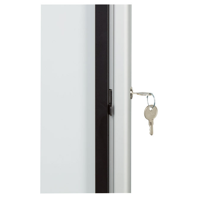Specifikacija: može se koristiti unutar zatvorenih prostora; unutarnji prostor za korištenje: 16 mm; aluminijski okvir; staklena krilna vrata (4mm); set tipli i vijka za postavljanje na zid; držač za markere i brisač; mogućnost zaključavanja (2 ključa)