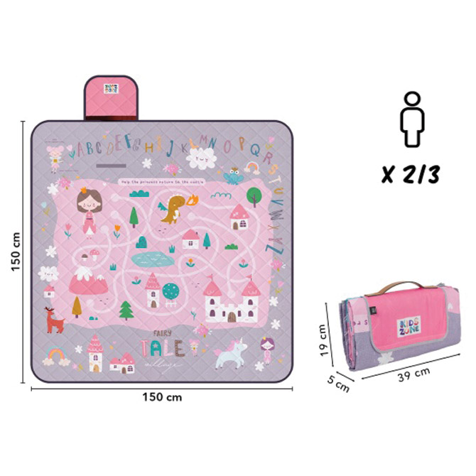 Specifikacija: Preklop s čičak trakom za jednostavno sklapanje i nošenje; troslojna; donja starna vodootporna; prva strana polyester-lako za čišćenje; sa interaktivnim igrama; za igranje unutra i vani; dim. složene podloge: 29x19x5cm; dim. otvorene podloge 150cmx150cm