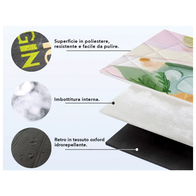 Specifikacija: Preklop s čičak trakom za jednostavno sklapanje i nošenje; troslojna; donja starna vodootporna; prva strana polyester-lako za čišćenje; dim. složene podloge: 35x25x10cm; dim. otvorene podloge 200cmx200cm