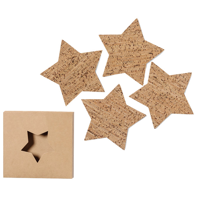 Specifikacija: Set od 4 podmetača u obliku zvijezde izrađena od prirodnog pluta. Set je u dizajnerskoj kartonskoj kraft kutiji s izrezanim dizajnom zvijezde.Dim:10.2 x 1.3 x 10.2 cm