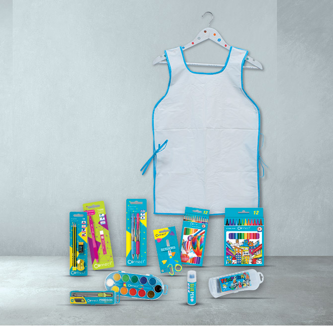 Specifikacija: izrađena od bijele rips PVC folije debljine 0,10 mm sa obrubom od trake ne tkanog tekstila sastava 100 % PP (tirkizna); dimenzija: 44×64 cm; sa vezicama za zavezati oko struka; nepropusna; briše se vlažnom krpom