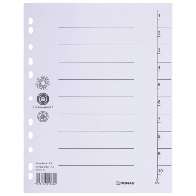 Specifikacija: format: A4; dimenzija: 235×300 mm; karton; 250 g/m2; 11 rupa; na 1 listu brojevi 1-10 koji se mogu izrezati po otisnutoj liniji; set od 100 komada