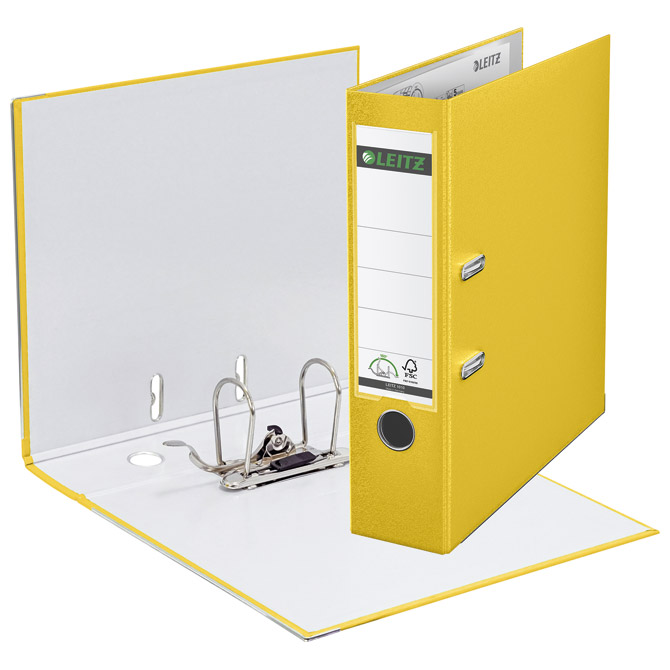 Specifikacija: format: A4; hrbat s džepom i etiketom; robusni karton presvučen PP folijom u boji s vanjske strane i plastificiranim bijelim papirom s unutarnje strane; metalna šina na donjim rubovima, bočno zatvaranje i rupa za prst na hrptu za jednostavno rukovanje i sigurno skladištenje dokumenata; patentirani mehanizam sa polugom koja se otvara za 180° i time omogućuje 50 % šire otvaranje, 20 % brži rad i istovremeno odlaganje na obadvije strane; 5 godina garanicije na mehanizam; FSC certifikat