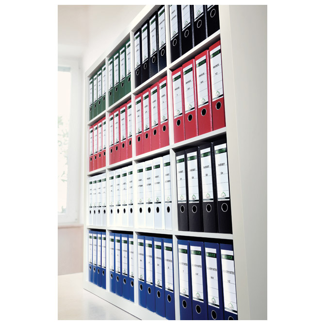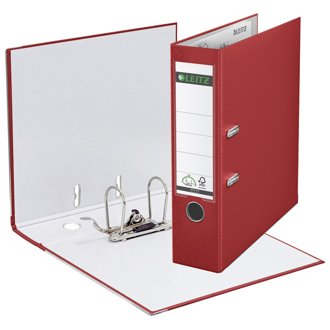 Specifikacija: format: A4; hrbat s džepom i etiketom; robusni karton presvučen PP folijom u boji s vanjske strane i plastificiranim bijelim papirom s unutarnje strane; metalna šina na donjim rubovima, bočno zatvaranje i rupa za prst na hrptu za jednostavno rukovanje i sigurno skladištenje dokumenata; patentirani mehanizam sa polugom koja se otvara za 180° i time omogućuje 50 % šire otvaranje, 20 % brži rad i istovremeno odlaganje na obadvije strane; 5 godina garanicije na mehanizam; FSC certifikat