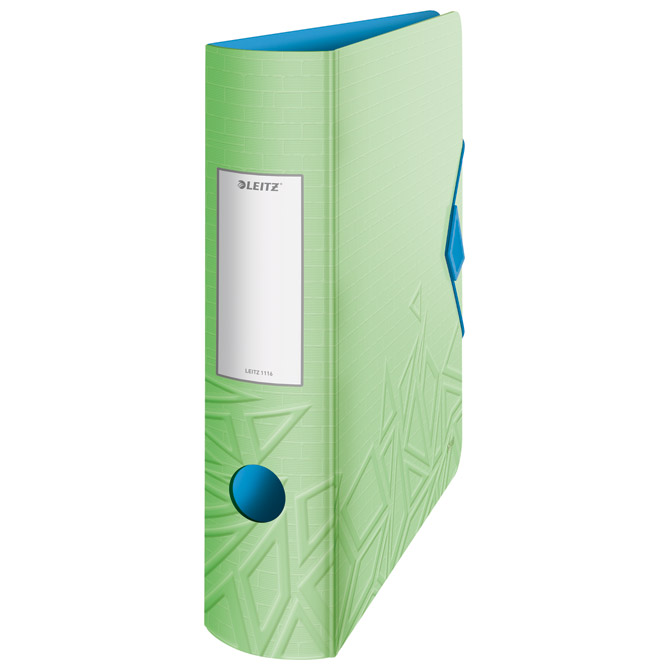 Specifikacija: format: A4; zaobljen hrbat sa samoljepljivom etiketom; hrbat: 82 mm; dimenzija: 312x318x82 mm; kapacitet: 500 listova 80 gramskog papira; presvučen obostrano laganim PP/Polyfoam izuzetno izdržljivim materijalom s utisnutom izvanrednom teksturom s vanjske strane; atraktivno zatvaranje s gumicom i rupa za prst na hrptu za jednostavno rukovanje i siguran transport dokumenata; patentirani mehanizam sa polugom koja se otvara za 180° i time omogućuje 50 % šire otvaranje, 20 % brži rad i istovremeno odlaganje na obadvije strane; s unutarnje strane ima: 1 proziran džep za odlaganje: CD-a, vizitki, spisa,…i 1. mjesto za olovku; linija Active Urban Chic pruža izražene kontrastne i odvažne boje koje u kombinaciji s laganim materijalom i ergonomskim dizajnom odgovaraju aktivnom načinu života, nastala iz fuzije stila i funkcionalnosti; 5 godina garancije na mehanizam