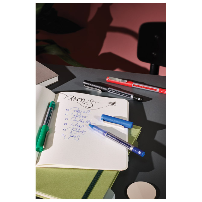 Specifikacija: promjer kuglice: 0,5 mm; širina ispisa: 0,2 mm (Micro); konusni vrh (conical nib); tekuća tinta; razina tinte je vidljiva; stalni protok tinte do posljednje kapi zahvaljujući izravnom sustavu punjenja; tinta ne blijedi (document proof)