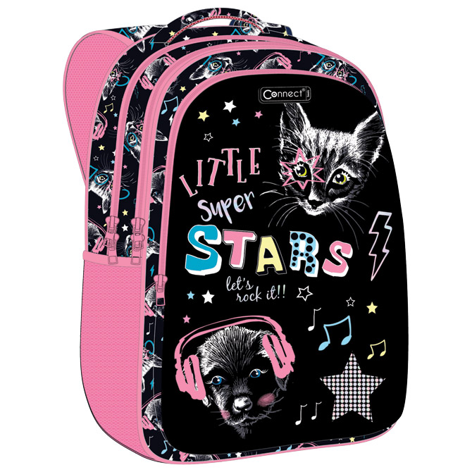 Specifikacija: iznimno lagan; dimenzija: 32x43x18 cm; ergonomski oblikovan leđni dio omogućava protok zraka; anatomski oblikovane široke naramenice; remenčići za podešavanje; snažno reflektirajući, oačana ručka za udobnost; 3 prostrana pretinca knjige, bilježnice i pribor; 1 džep sa bočne strane; oznaka za ime; bočna zaštita; materijal: 100 % poliester; 900 grama; kapacitet: 25L