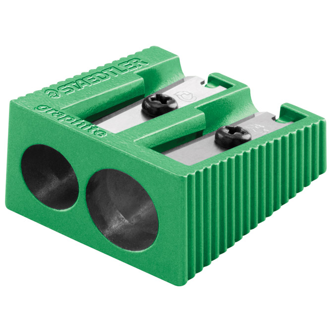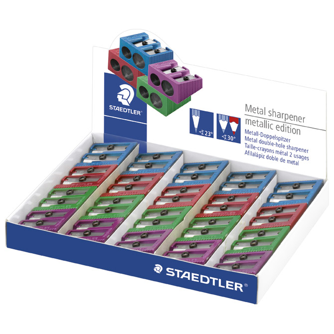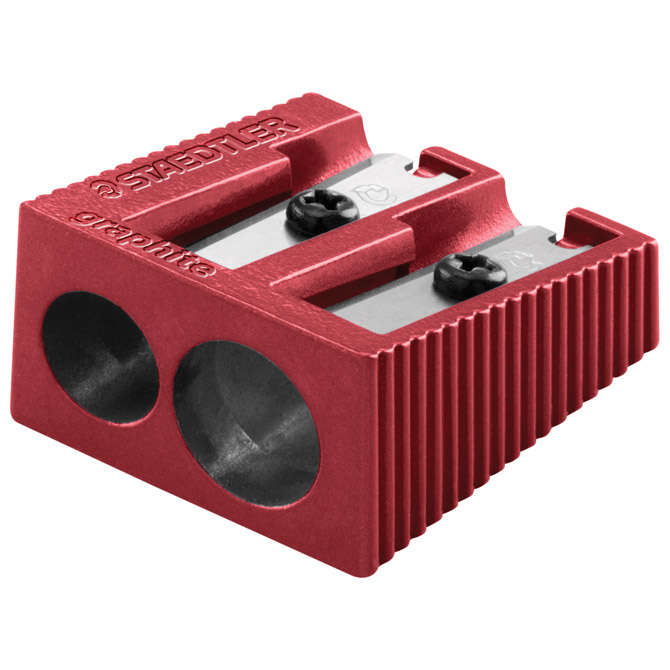 Specifikacija: metalno; 2 rupe; za olovke standardne debljine do fi: 8,2 mm sa kutom šiljenja od 23° (grafitne) i Jumbo olovke (grafitne olovke i drvene bojice) debljine do fi: 10,2 mm sa kutom šiljenja od 30°
