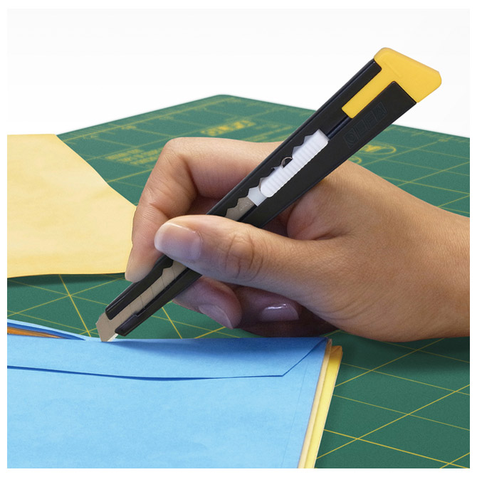 Specifikacija: širina noža: 9 mm; metalno tijelo; vrlo tanko tijelo za delikatne radove i teško pristupna mjesta; idealno za rezanje: papira, filmova, folija, pakirnih i ostalih traka…; posebne značajke: zakačka za džepove i remen te samozaključavanje; preporučeni zamjenski nož: AB i ABB