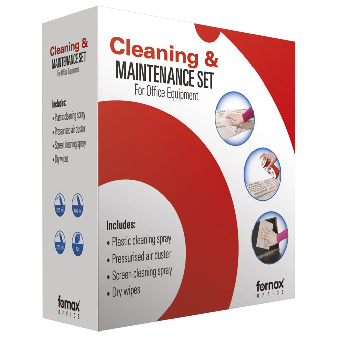 Specifikacija: sadrži: sprej za čišćenje plastike (250 ml), komprimirani zrak (400 ml), sprej za čišćenje ekrana (250 ml) te 10 suhih maramica