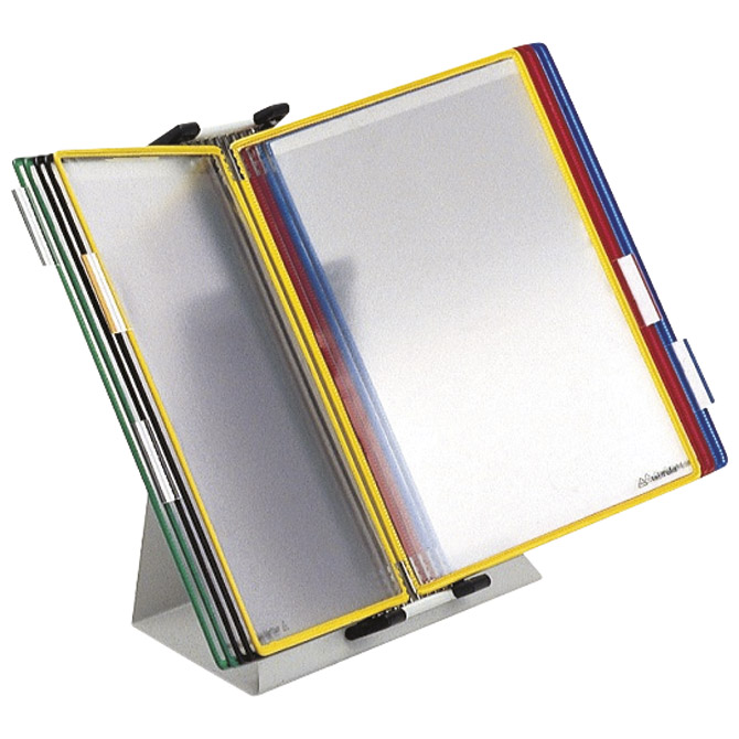 Specifikacija: može se staviti na zid; sa 10 mapa formata A4; za cjenike, stranice kataloga, ilustracije, slike i sl.; na rubu svake mape su jahači; neklizeća metalna baza; jednostavna montaža