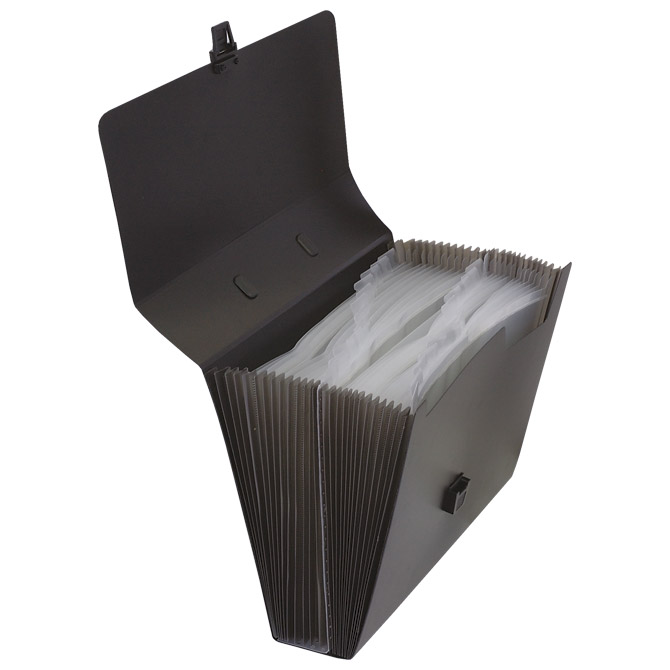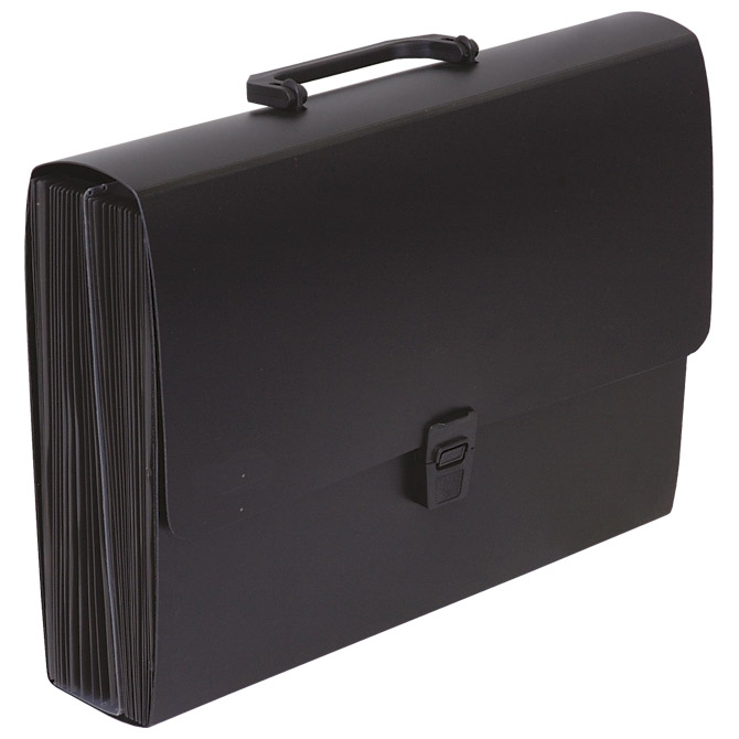 Specifikacija: format: A4; dimenzija: 330x240x75 mm; PP; ima 26 prozirnih PP pregrada; s ručkom i kopčom za zatvaranje
