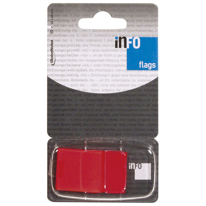 Specifikacija: dimenzija: 25×43 mm; 50 zastavica; poliester; mogućnost višekratnog korištenja; za označavanje stranica i dokumenata; blister